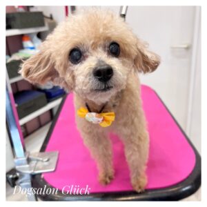 全身すっきりとお手入れがしやすいスタイルで足先も短く🐾しっぽはバナナの形に💛歯磨きもお手のものです💯カットに入るといつもお昼寝をしていますが、今日は他のお友達が気になったみたいでじーっと見ていました🔭
